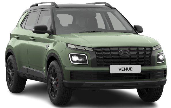 Hyundai Venue (2023-2025) is available in 12 different colours - Fiery Red With Abyss Black Roof, Fiery Red Dual Tone, Typhoon Silver, Titan Grey with Abyss Black Roof, Atlas White With Abyss Black Roof, Ranger Khaki with Abyss Black Roof, Fiery Red, Atlas White, Ranger Khaki, Titan Grey, Denim Blue, Abyss Black.