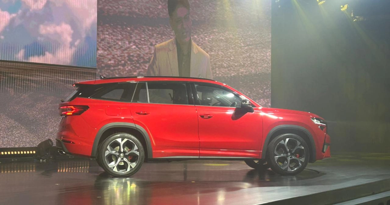 Škoda Auto India Brand Director Ashish Gupta on stage, announcing the company's timeline of launches and refreshes.